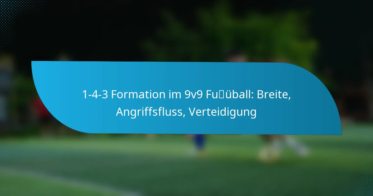 Die 1-4-3-Formation im 9v9-Fußball ist ein taktisches Setup, das einen ausgewogenen Ansatz zwischen Verteidigung und Angriff betont. Durch die Positionierung eines Torwarts, vier Verteidigern, drei Mittelfeldspielern und einem Stürmer verbessert diese Formation die Breite und erleichtert flüssige Angriffsbewegungen, wodurch die Teams den Gegner dehnen und Raum für effektive Spielzüge schaffen können.
