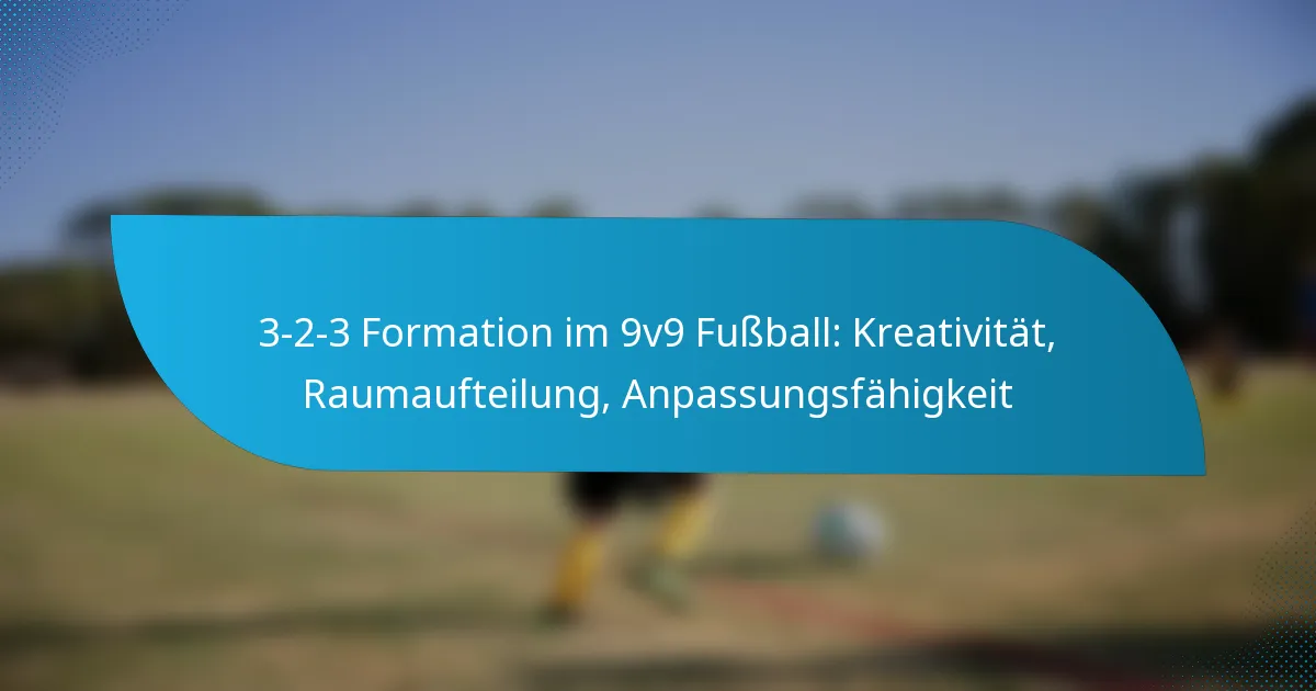 Die 3-2-3-Formation im 9v9-Fußball ist ein taktisches Setup, das drei Verteidiger, zwei Mittelfeldspieler und drei Stürmer umfasst und dabei angreifende Kreativität mit defensiver Stabilität ausbalanciert. Diese Anordnung fördert Kreativität und effektive Raumnutzung, wodurch Teams in der Lage sind, Breite und Tiefe auszunutzen und innovatives Spiel zu fördern. Durch die Förderung dynamischer Positionierung und flüssiger Bewegungen verbessert die 3-2-3-Formation sowohl offensive Möglichkeiten als auch die defensive Organisation.