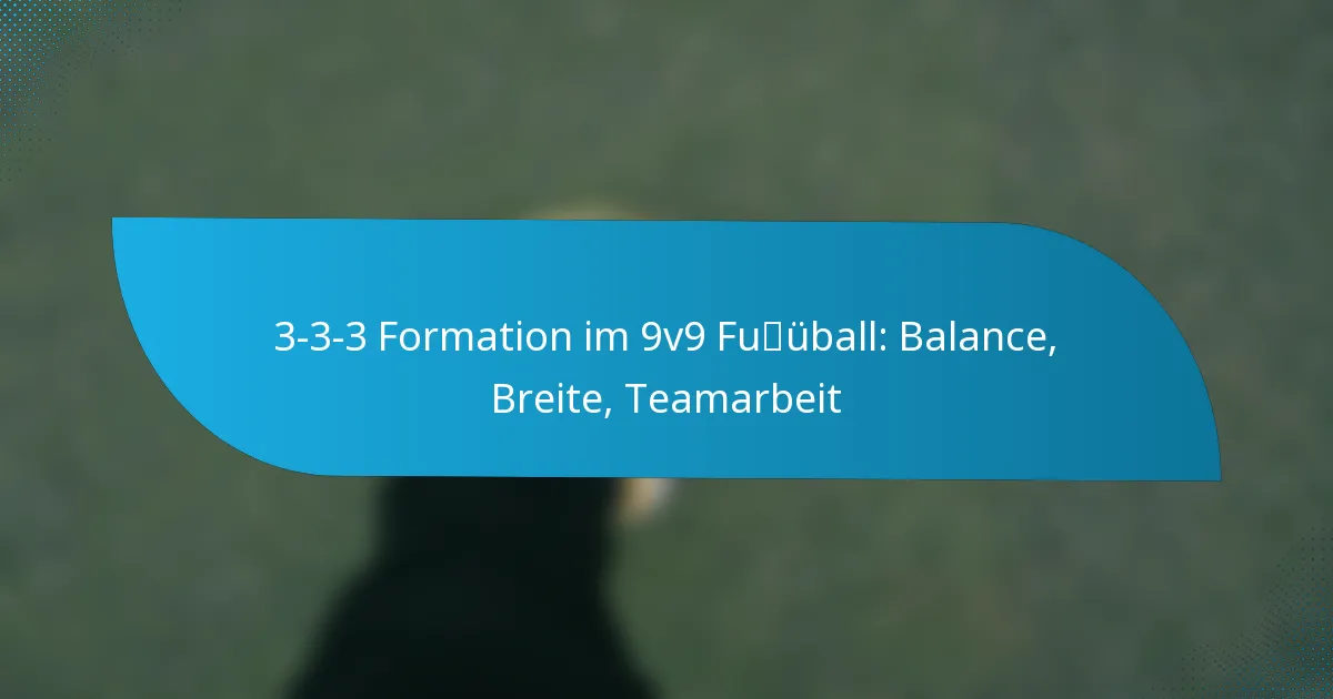 Die 3-3-3-Formation im 9v9-Fußball ist ein taktisches Setup, das drei Verteidiger, drei Mittelfeldspieler und drei Stürmer umfasst und dabei Balance, Breite und Teamarbeit betont. Durch die gleichmäßige Verteilung der Spieler über das Feld fördert diese Formation eine effektive Kommunikation und stellt sicher, dass alle Bereiche während des Spiels abgedeckt sind. Ihr strategischer Einsatz von Breite verbessert die Ballbewegung und schafft Angriffsgelegenheiten, was sie zu einer formidable Wahl für Teams macht, die sowohl defensive Stabilität als auch offensiven Druck aufrechterhalten möchten.